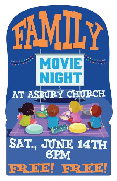 The Family Movie Night at Asbury Church is coming Saturday, June 14th at 6pm in the Gym.