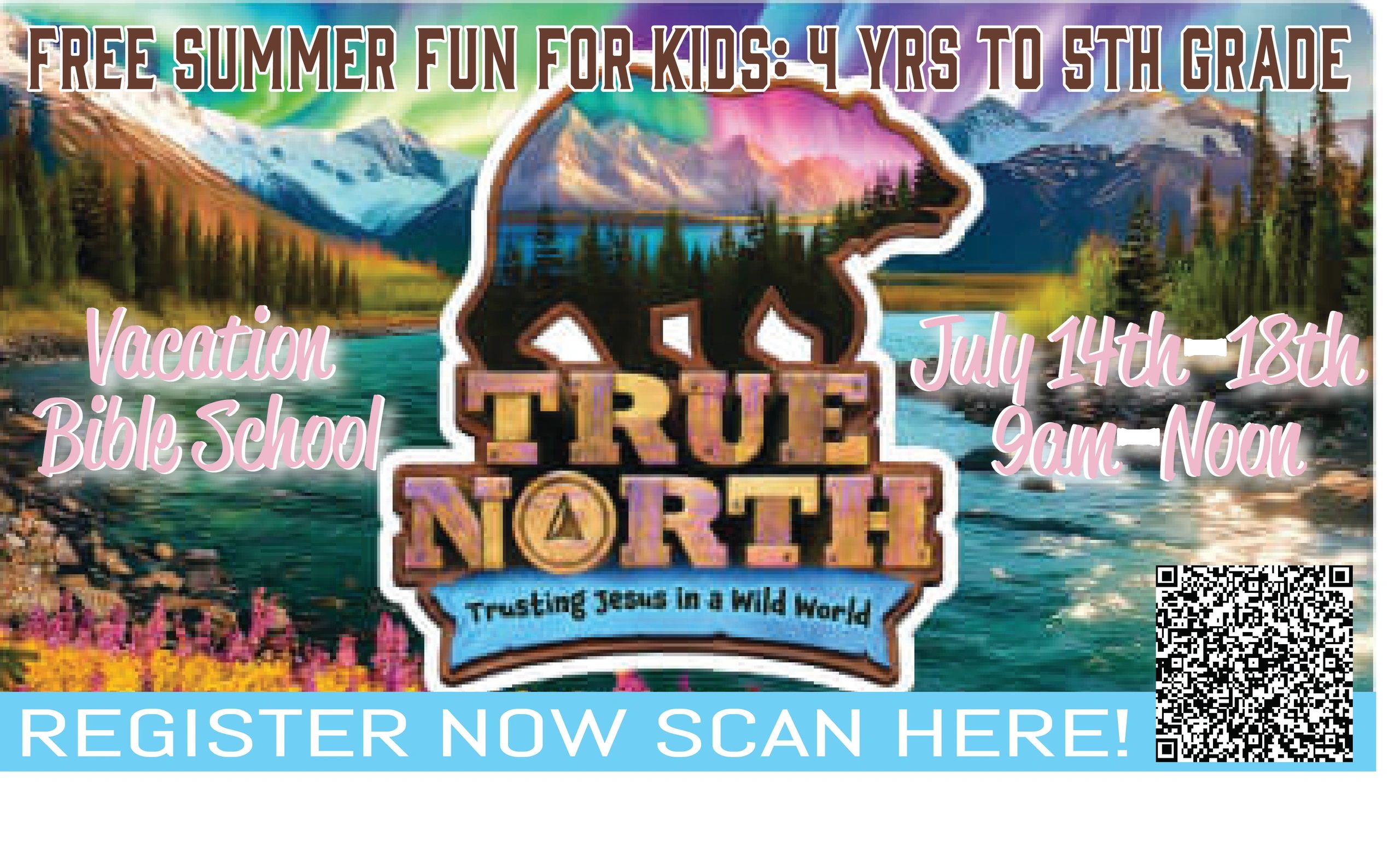 Join us July 14th-18th, 2025 for a week of fun as we shine a light on Jesus’ love through worship, crafts, Bible stories, games and more at Asbury’s True North VBS! VBS is a FREE event for 4yrs (potty trained)-5th graders from 9-Noon.